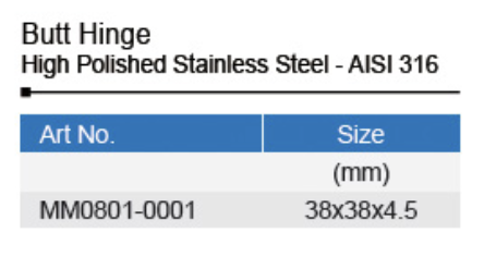316 Stainless Steel Heavy Duty Cast Butt Hinge 38mm x 38mm x 4.5mm(thick)