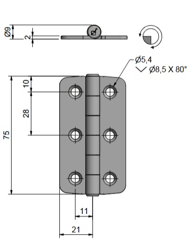 Stainless Steel Butt Hinge 75x42