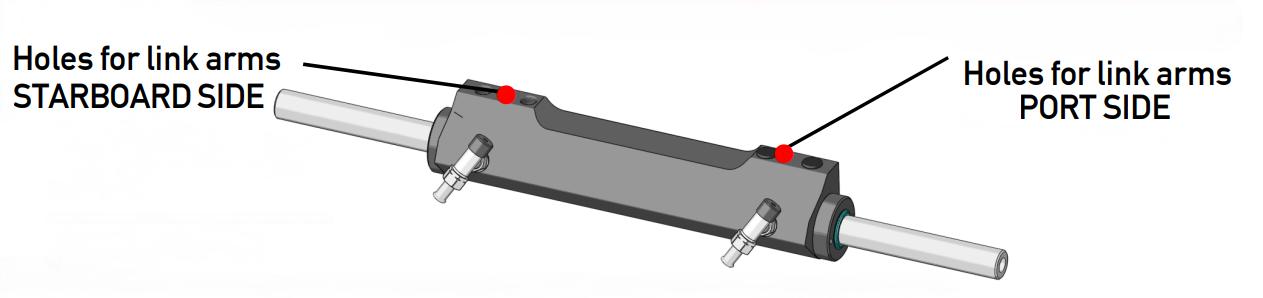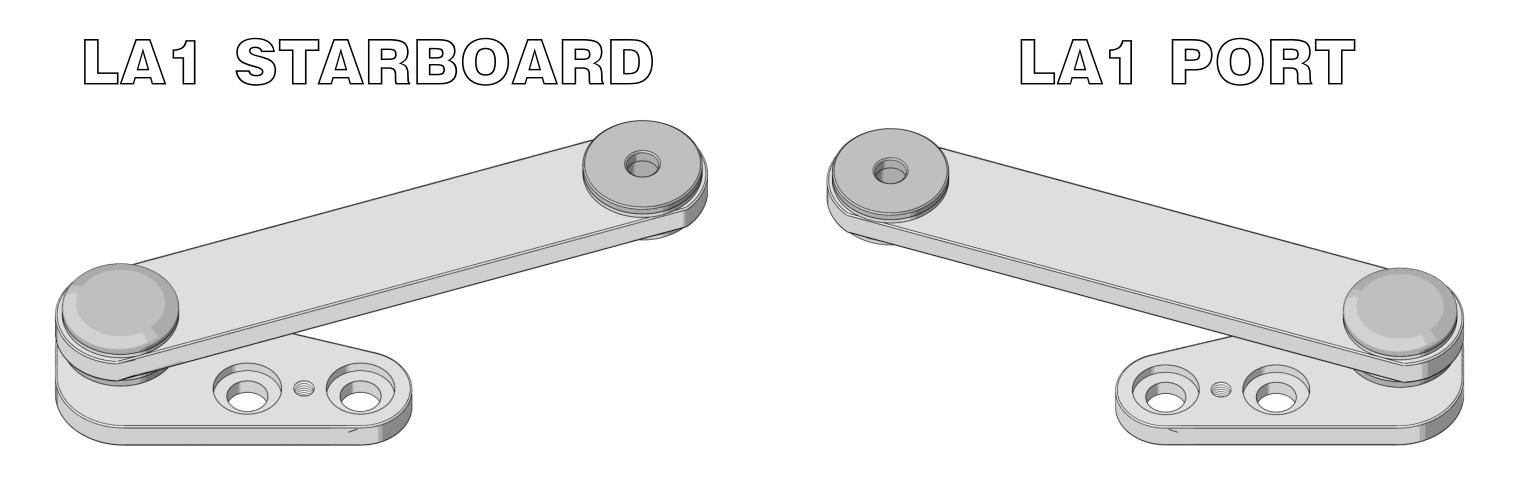 LA1 Link arm kit for UC128-OBF standard cylinder (Starboard) and LA1P link arm kit for UC128P-OBF Port cylinder, used to connect the steering cylinder to an outboard engine