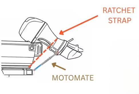 Fit safety ratchet strap (red) around trailer and motor, and tension firmly