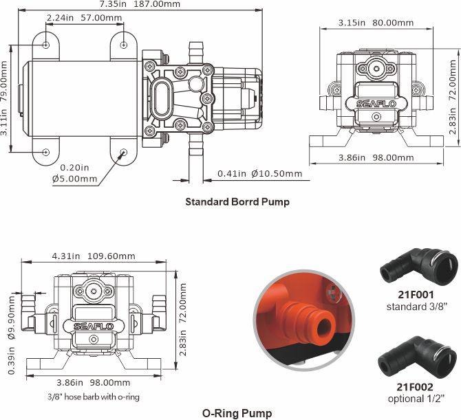 The 22-Series Fresh water Diaphragm pump is compact and designed for a wide range of applications, The pump is self-priming and can be run dry without harm and has an internal bypass feature which reduces pump cycling and features a built-in pressure switch, which automatically starts and stops the pump when the faucet is opened or closed.