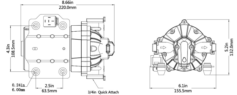 The 53-Series is Seaflo's Heaviest-Duty diaphragm water pump and provides a high volume water flow with reduced pump cycling, thanks to the large five-chamber diaphragm. Quick Attach Fittings make installation or replacement easy.These models are designed to run without an accumulator tank and can be connected to up to five fixtures!