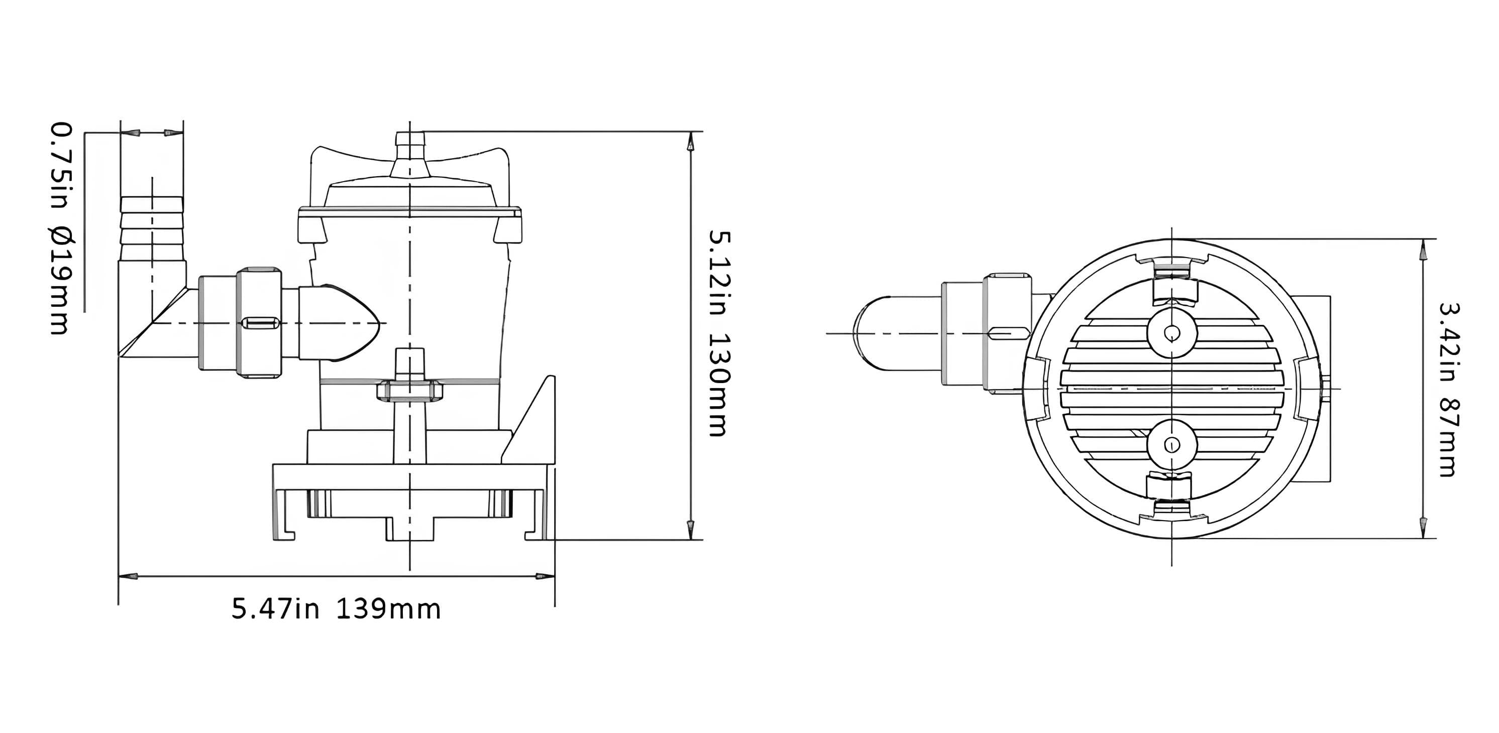 The Seaflo 03 Series 600GPH bilge pump comes equipped with a mounting bracket that allows the pump to be mounted vertically.
