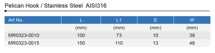 Pelican Hook or Senhouse Slip Hook for securing life rafts in 316 Stainless Steel